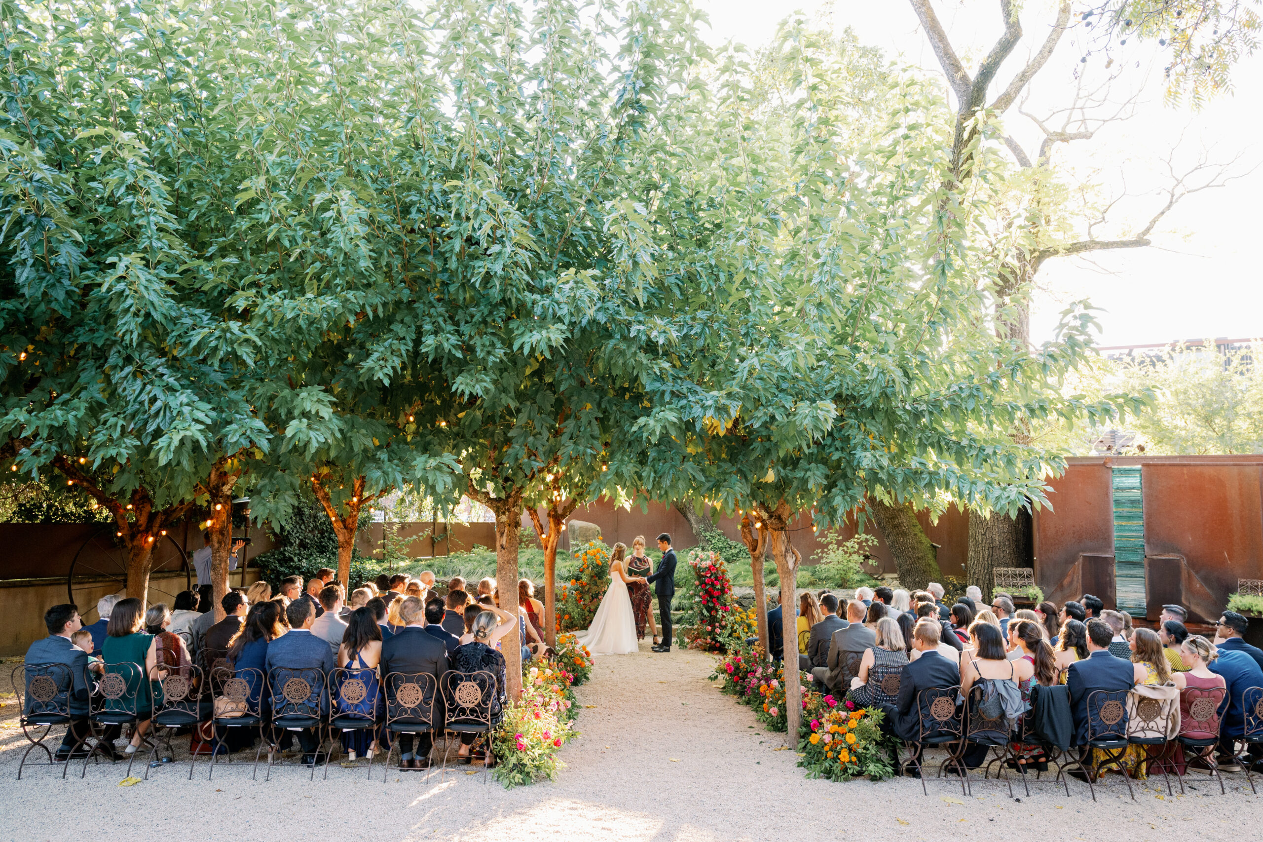Sara and Eugene met at a NYE party 3 years ago. It is easy to see what bonded these two. They share a love of the outdoors and physical activity, specifically hiking and mountaineering. They are both incredibly smart and accomplished and have a calm about them. There were moments during the day when I saw Sara and Eugene simply observing, taking in the scene of their closest family and friends all together. Sara and Eugene asked for light, bright, joyful imagery that captured the people they love. Their color palette of vibrant autumnal hues and punchy pinks really complimented the vision they had for their celebration. The wedding day would not be complete without Sara and Eugene’s 3 legged love, Axl. Named after the lead singer of Sara’s favorite band, Guns & Roses, Axl was a very important presence. He has been with Sara since before Eugene but it is evident that Eugene and Axl have their own sweet bond as well.